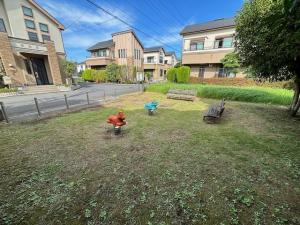 児童遊園北側の芝生スペースは、生活道路の行き止まり解消のための生活道路延伸用地で、現在は公園の一部として暫定的に開放しています。