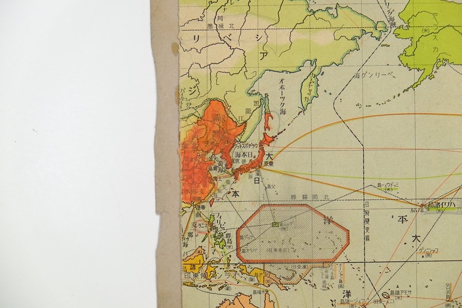 戦争関連資料〈写真〉 子どもの生活 学校・学童疎開 人びとの生活 子どもの生活 戦場・軍隊生活 小学校で使っていた地図教材 クリックで拡大します 提供者 石井 雅樹 様 時期 戦時中 場所 学校 説明 おば様が使用していた地図教材。日本の植民地となった地域を赤色鉛筆で塗りつぶしていた。 この提供者の他の資料 戦時中の新聞 戦時中の新聞 鎌倉丸の写真 戦時中の絵ハガキ 国民歌 愛國行進曲のレコード 帝国在郷軍人会の会員章 愛国婦人会会員章 書籍「青年宝典」 陶器で作られたプラグ インドネシアの紙幣 海軍士官帽子票 陸軍の衿章 「子どもの生活」の資料一覧へ シェア ポスト