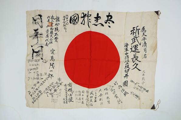 戦争関連資料〈写真〉 戦場・軍隊生活 出征・入隊 人びとの生活 子どもの生活 戦場・軍隊生活 出征旗 クリックで拡大します 提供者 大平 世津子 様 時期 昭和19年 (1944年) 9月 場所 - 説明 お父様の出征旗。昭和19年 (1944年) 9月に、横須賀海軍の工作兵として入隊。その後、工作兵として働く中、終戦を迎えた。 この提供者の他の資料 大東亜戦争特別据置貯金証書 千人針 祝入団餞別控 海軍の袖章 「戦場・軍隊生活」の資料一覧へ シェア ポスト
