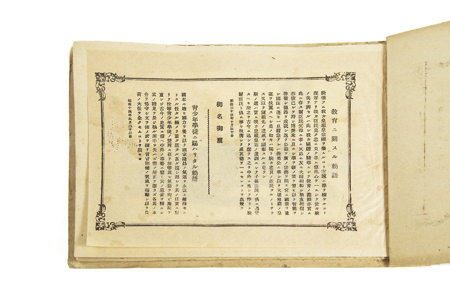 戦争関連資料〈写真〉 子どもの生活 学校・学童疎開 人びとの生活 子どもの生活 戦場・軍隊生活 武蔵野町第一國民學校修了記念 クリックで拡大します 提供者 橋立 久子 様 時期 昭和17年 (1942年) 場所 東京都武蔵野市 説明 昭和17年 (1942年) 度に東京府北多摩郡武蔵野町第一國民學校の修了記念として発行されたもの。表紙をめくると教育勅語が記載されている。 この提供者の他の資料 出納簿 通信箋 「子どもの生活」の資料一覧へ シェア ポスト